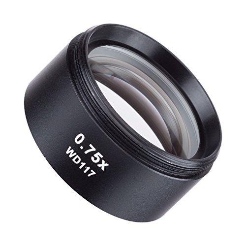 0.7X Barlow lens for SM series stereo microscopes, extending working distance and field view of the microscope and cutting magnification power by 0.7 times. Mounting size: 1-7/8" (48mm) in diameter.