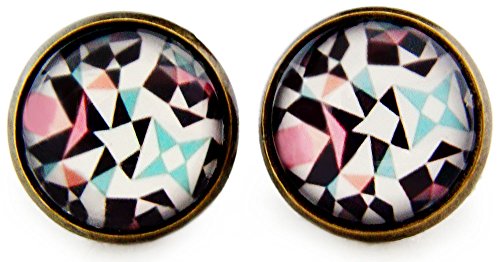 Miss Lovie Damen Ohrstecker Kaleidoskop Ohrringe Cabochon 12mm Modeschmuck Pink Blau Bronze