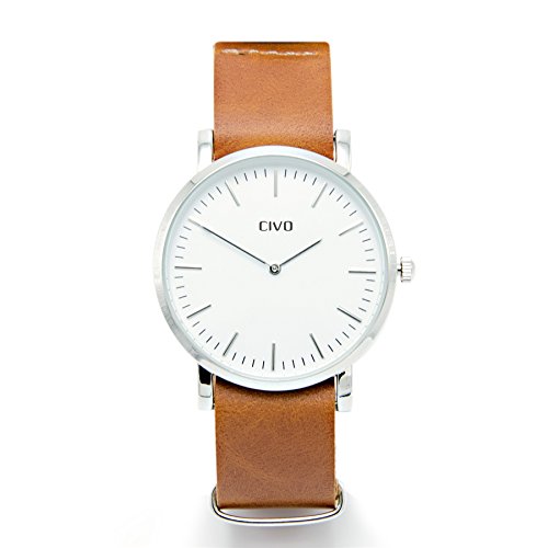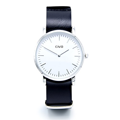 PERFECT LEDER UND HARDWARE: Premium-Kunstleder (wasserdicht , flexibel, glanzend), schlank rechteckigen Hardware (Edelstahl) mit poliert, geburstet, PVD und der Goldende , genaht Bau. Unsere CIVO NATO Riemen stehen von anderen regelmassigen Uhrenarmbander auf dem Markt aus durch hohere Qualitat Leder, Hardware-Finish-Optionen und genaht Konstruktion. Leicht und atmungsaktiv, aber dennoch sehr robust, diese CIVO Leder nato Militaruhr Band wird Ihre beste Wahl sein!