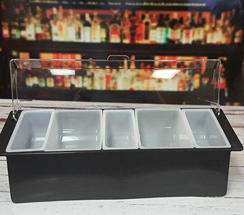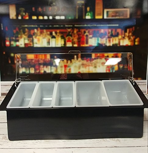 Ice Cooled BLACK Chilled Condiment Dispenser Custom FIVE Compartments w/Signature Cocktail Picks