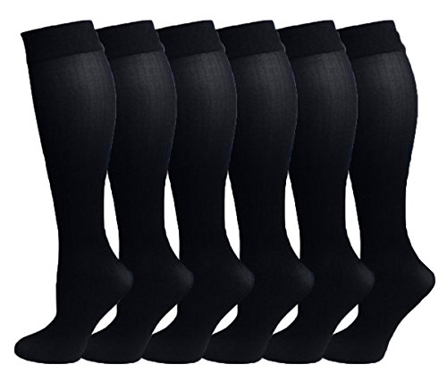 Ladies 6 Pair Pack Compression Socks Premium Cotton (Black)