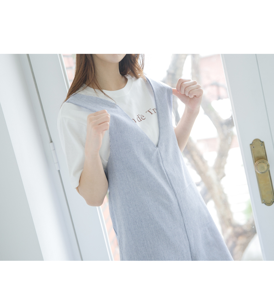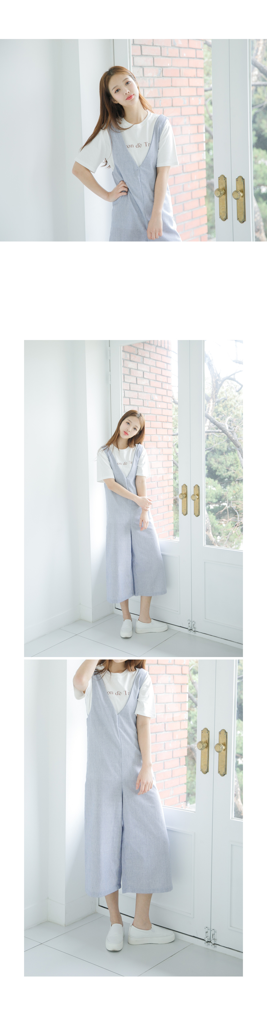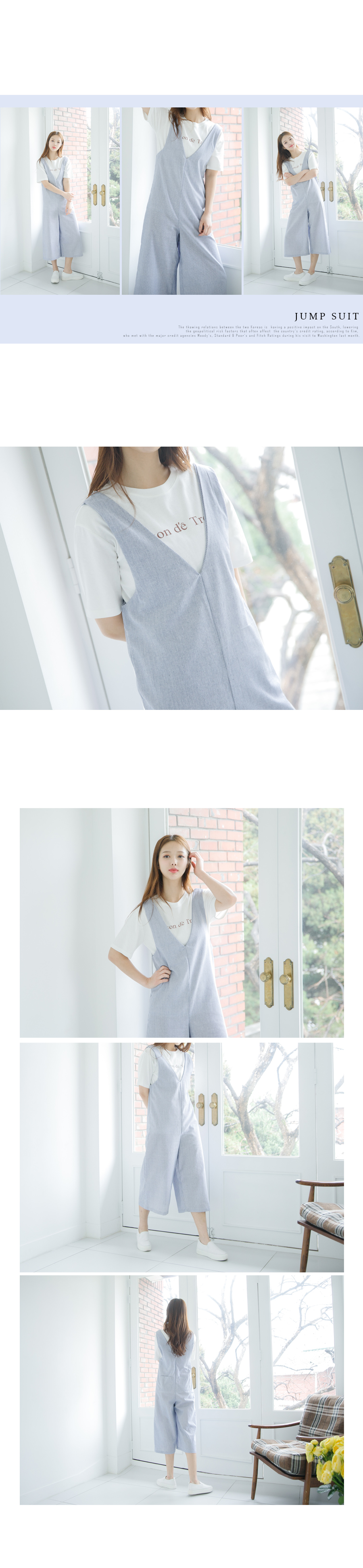 잔스트라이프 패턴으로 밋밋하지 않고 유행타지 않아 오래 착용 가능한 점프수트!