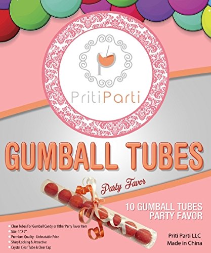 Are You Trying To Think Of A Party Favor Idea? Stop searching, because there isn't a better gift than a Tube Container filled with Gumballs, candies and little gifts! Get the 10 Crystal Clear Tubes and fill them with Gumballs or any candy you like! Fits JUMBO 1" Gumballs! They will look so cute and pretty! Fill them with colorful Gumballs or candies and wrap an elegant ribbon around them. And they are ready to be handed out to the guests! 10 Storage Tubes With Many Different Uses You can store many different things in the Crystal Clear Gumball Tubes. The possibilities are endless! Put in them watches, soaps, cosmetic products, grafts, buttons, beads, sand, and many more things. You can also put foods in them. The material of the Tubes is safe for food and it is free of hazardous chemicals. Premium Quality And A Great Size The Clear Gumball Tubes are made with high quality materials, so they can be used again and again. The Tube Containers come with their own crystal clear caps that keep the content secure and in place. Their size is 1" x 7" inches, which is not restrictive at all. They are definitely big enough to give as a party favor. The Priti Parti Satisfaction Guarantee Get the pack of 10 Container Tubes and try them out. See how they function and how great their quality is. If you are not satisfied with them, you can return the Clear Gumball Tubes to us and we will give you your money back. Thanks to the Priti Prati satisfaction guarantee, this is a 100% risk-free purchase. So Don't Hold Back! Click The "Add to Cart" Button NOW! 0 |