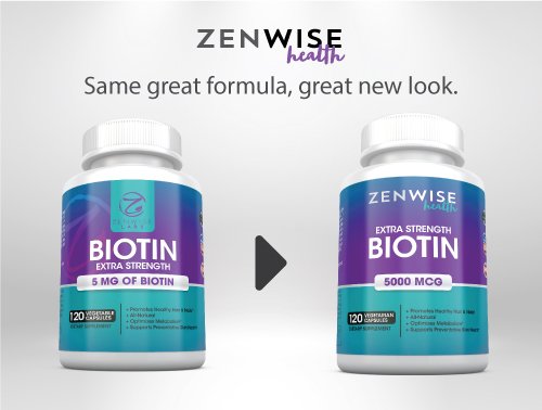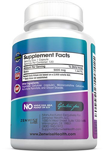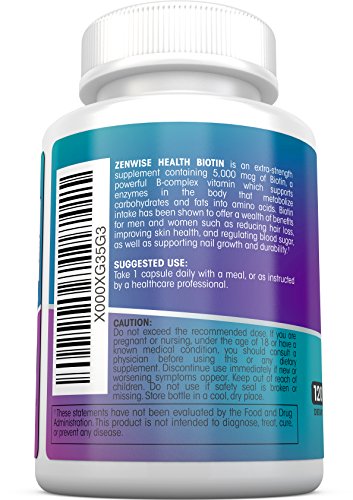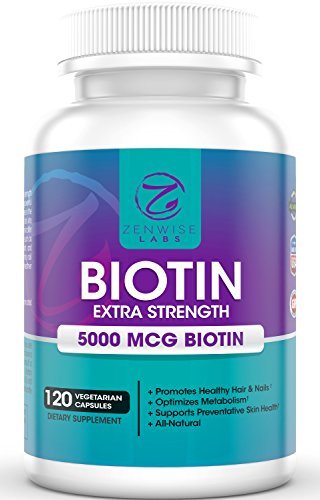 -. Binding : Health and Beauty -. Brand : Zenwise Health -. ProductGroup : Health and Beauty -. ProductTypeName : HEALTH_PERSONAL_CARE -. Title : Biotin With 5000 MCG - Extra Strength Vitamin B-Complex Supplement to Improve Hair Growth, Improve Skin Health & Have Thicker Nails