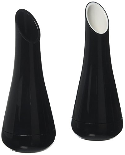 - Table friendly design - black plastic exterior with white and black accents to differentiate which contains salt, and which contains pepper