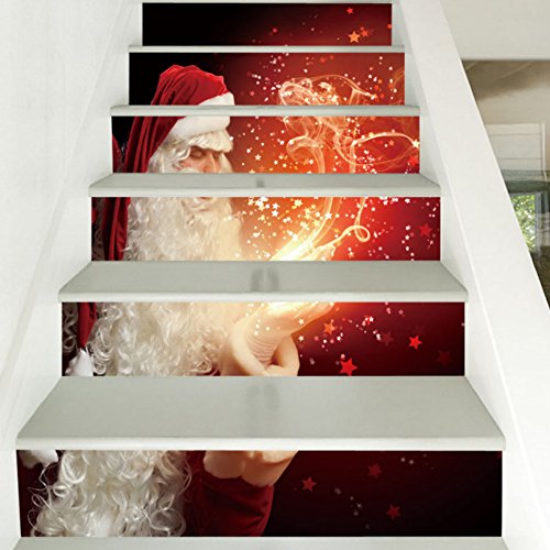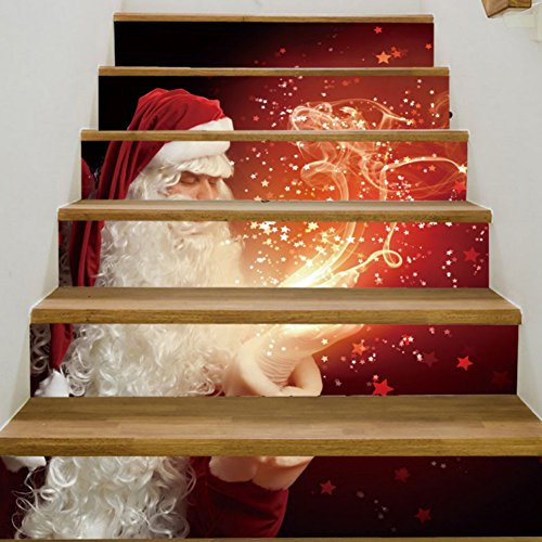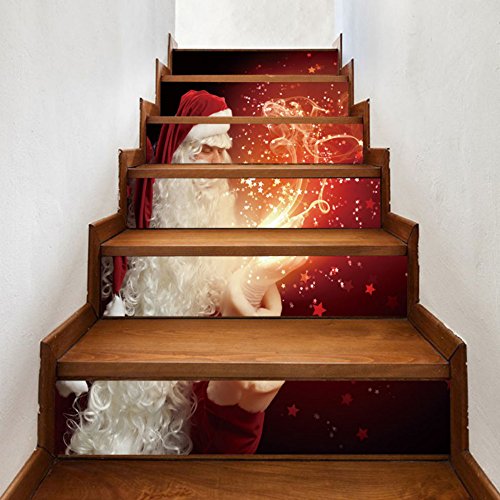 Christmas Santa Stairs Stickers Removable Waterproof Wallpaper Stairway Stickers Home Decor 3D 6PCS