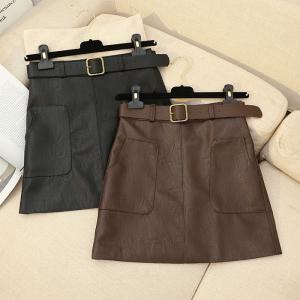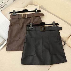 レザーのかっこよさとすっきりAラインのキュートさがマッチした魅力のデザインです♪