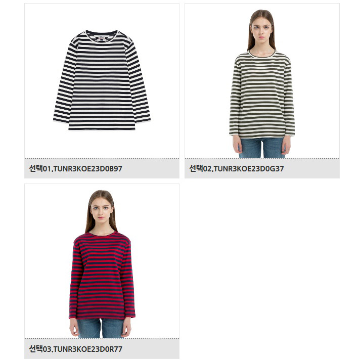 | 여성 베이직 스트라이프 크루넥 티셔츠 | | Style No. TUNR3KOE23D0R77 | | 컬러 배색 스트라이프 디테일이 돋보이는 여성용 크루넥 티셔츠입니다. 소프트하며 신축성있는 코튼 소재로 착용감이 편안합니다. 베이직한 디자인으로 데일리 룩, 캐주얼 룩에 활용하기 좋습니다. |