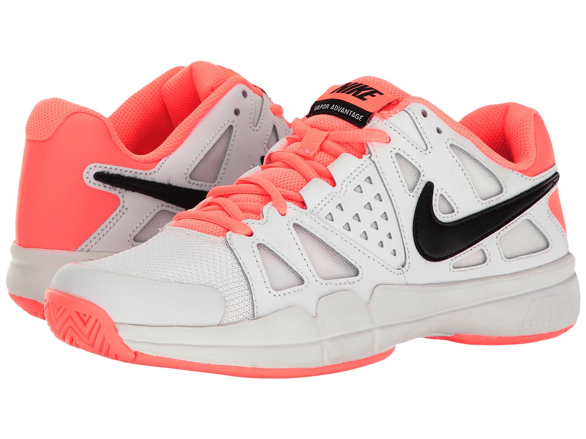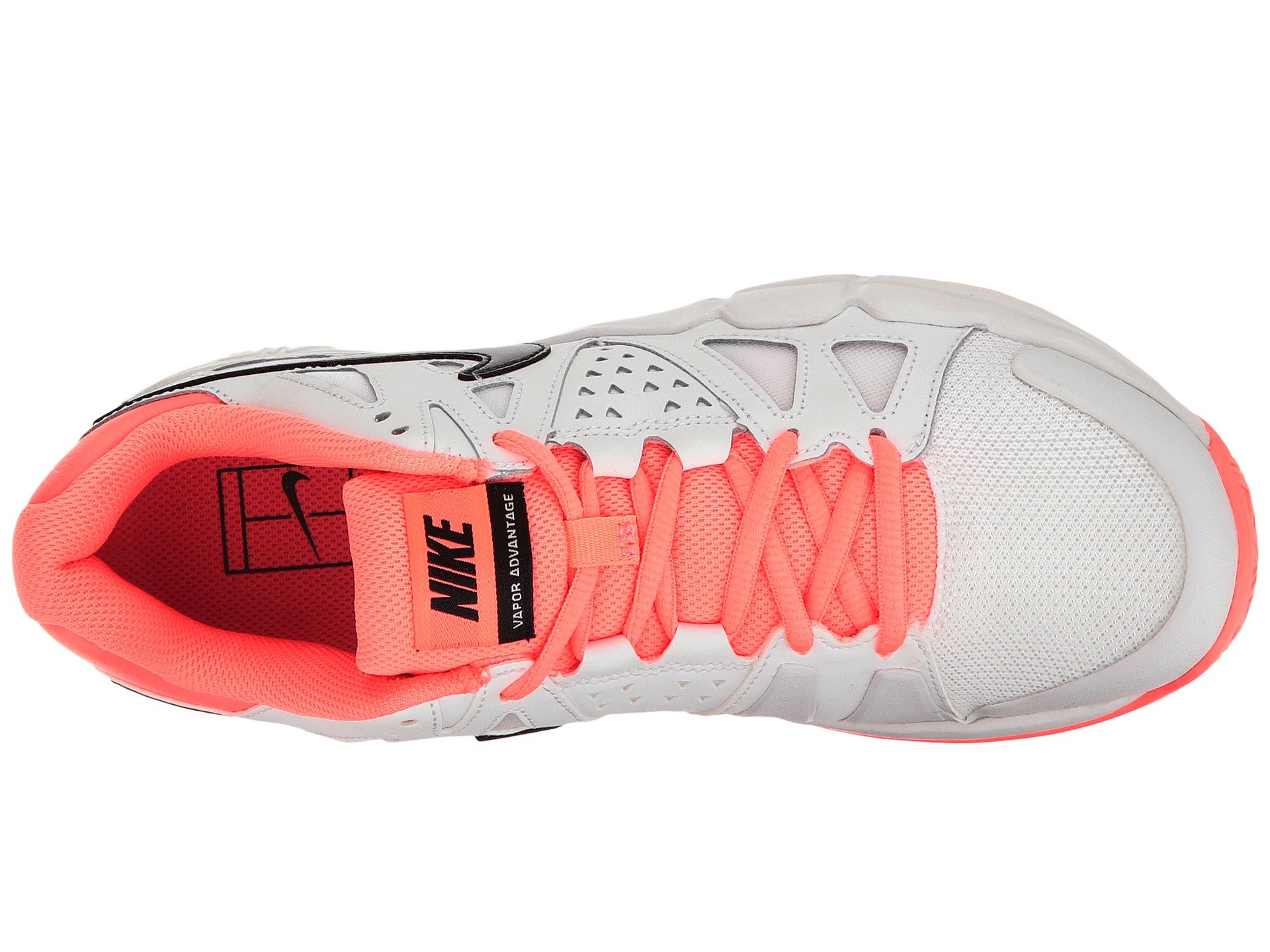 | Product Information SKU: #8150882Nike? serves up another winner! Whether you're the aspiring pro or the recreational club player, the women's Air Vapor Advantage tennis shoes will give you the upper hand from the first set to the last!Lightweight construction for great fit and responsiveness.Mesh upper with synthetic overlays add support and breathability.Padded collar and tongue for a great, supportive fit.Mesh lining and a cushioned insole offers great internal comfort while adding shock absorbing properties.Full-length Phylon with encapsulated Air-Sole unit in the heel for lightweight cushioning and impact protection.A midfoot shank delivers improved stability.XDR rubber compound on the outsole provides superior traction.Imported.Product measurements were taken using size 8.5, width B - Medium. Please note that measurements may vary by size.Weight of footwear is based on a single item, not a pair.Measurements: Weight: 11 oz |