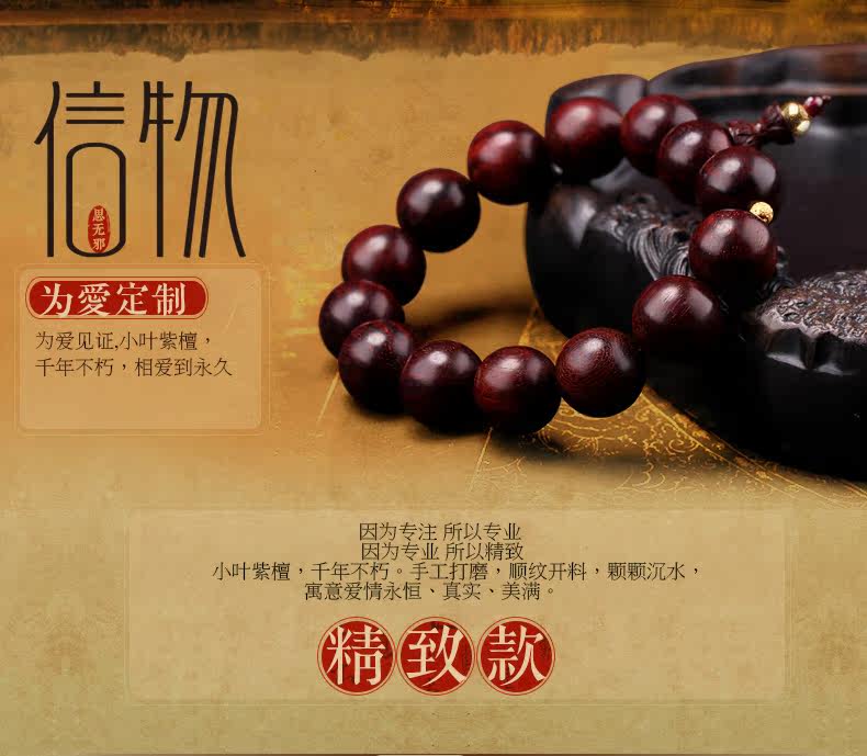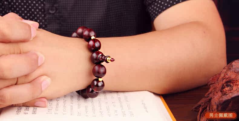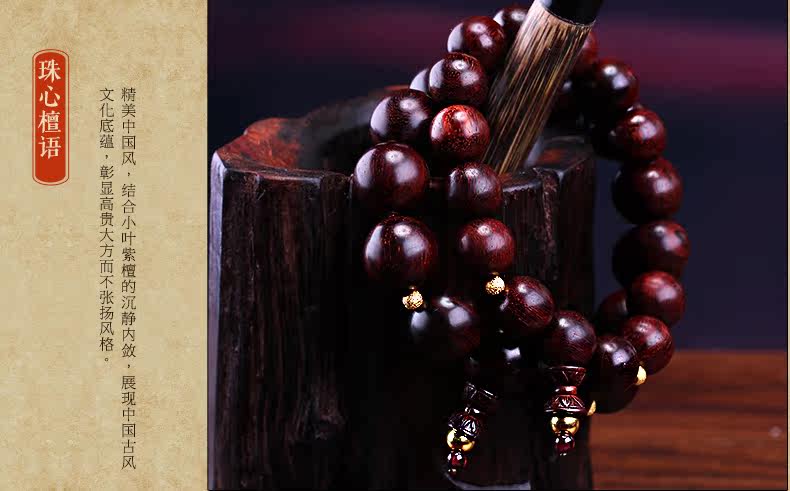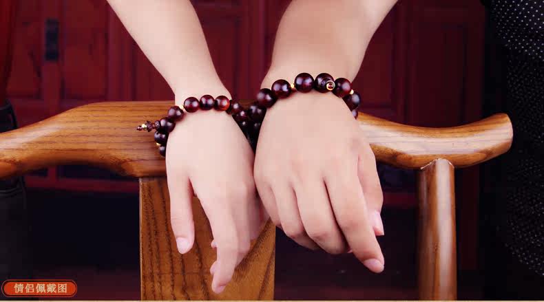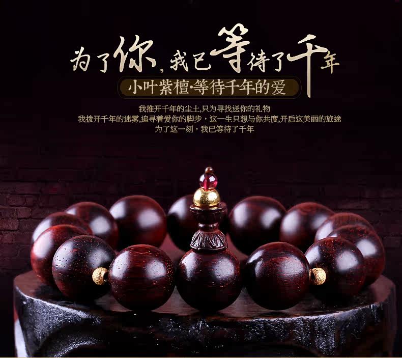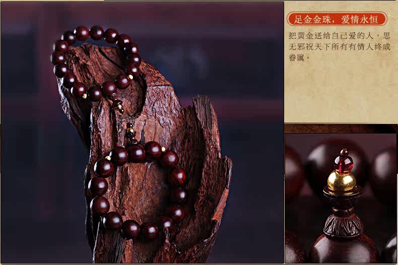 珠宝礼物小叶紫檀佛珠足金转运珠路路通黄金手链情侣款