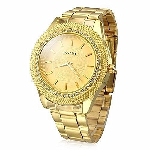 -. Title : Mens Gold Watches Diamond Dial Gold Steel Analog Quartz Wrist Watch