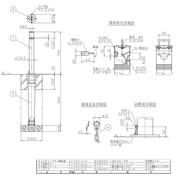 ●スペック:上下式・φ76.3・カギ付・クサリ内蔵(2m)