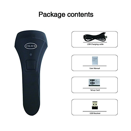 Cilico Wireless UPC Barcode Scanner, Portable USB 1D Laser Barcode Reader with USB receiver for Store,Supermarket,Warehouse (Black)