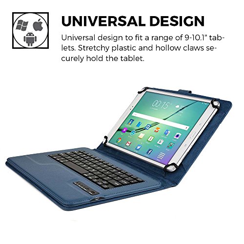 -. Feature : UNIVERSAL DESIGN TO FIT 9 - 10.1" INCH TABLETS - designed to fit any tablet with 9'' to 10.1'' inch screen. Rubberized, silicon covered scratch proof claws tightly fit on 4 corners to hold tablet securely. Claws expand from 5.9'' to 7.2'' width (150-183 mm) & 8.8'' to 10.2'' length (223-259 mm). Open sides provide easy access to all tablet ports, buttons and speakers. / 2-in-1 LEATHER FOLIO CASE WITH STAND & DETACHABLE KEYBOARD - multi purpose functionality > use as compact keyboard folio case or basic folding folio tablet case. Foldout stand supports hands free video screen display. Remove magnetic keyboard tray to turn keyboard cover into classic portfolio case. Premium faux leather protective exterior provides durable, red, shockproof cushion when dropped. Soft suede microfiber interior protects screen from scratches and breaking. / WIRELESS BLUETOOTH 3.0 RECHARGEABLE QWERTY KEYBOARD FOR 9 - 10.1" INCH TABLETS - QWERTY keyboard compatible with Android, Windows and iOS platforms. Easy setup Bluetooth connection automatically connects with tablet. Features 59 laptop-like keys; 12 shortcut keys to tablet's native functions; 10m working range; 100 hour rechargeable lithium polymer battery. / IDEAL FOR TYPING IN BUSINESS, SCHOOL, TRAVEL OR HOME - designed to stand your tablet hands free so you can focus on work, reading, watching videos, typing like on normal computer laptop. Executive looks great for man, woman, students, boys, girls, kids and teens in school. Weighs same as 4 sticks of butter - 470 g / 1 lbs. / RISK-FREE PROMISE - If this case doesn't make typing on tablet easier, doesn't convert your tablet into a laptop and doesn't make you work & study faster, then you are entitled for a full 100% refund - no questions asked! Choose express shipping with DHL - guaranteed delivery in 2-3 days.