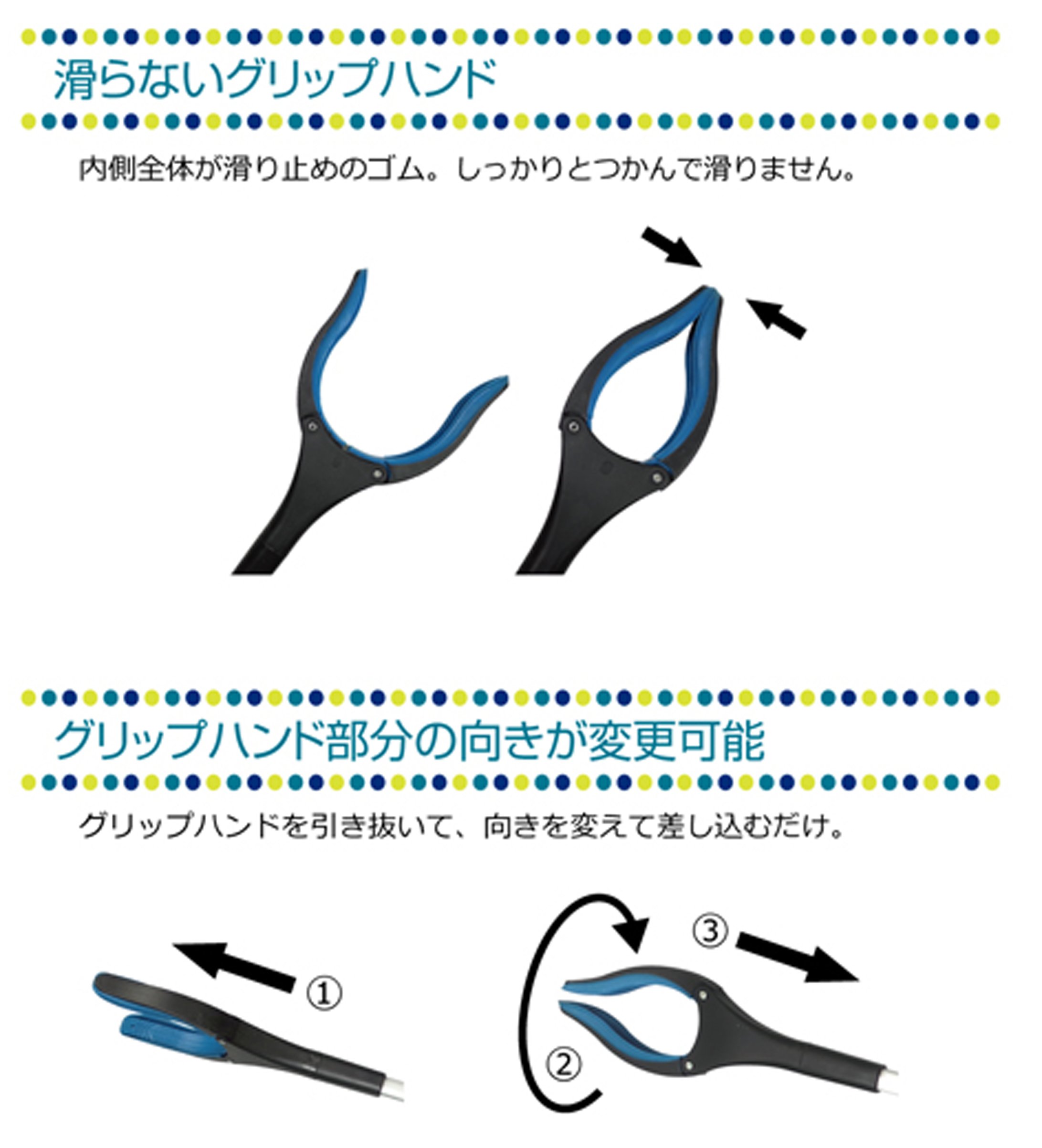The direction of the grip hand part can be changed.
