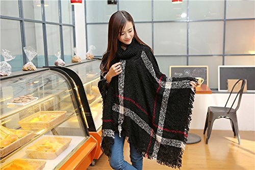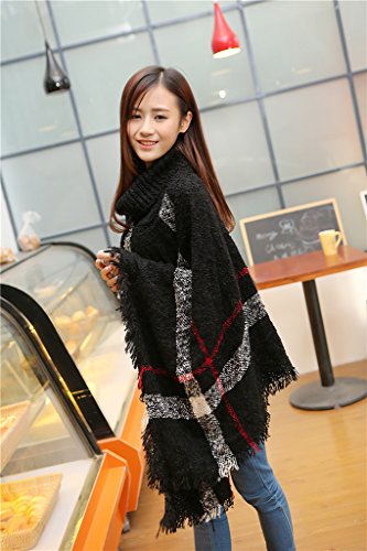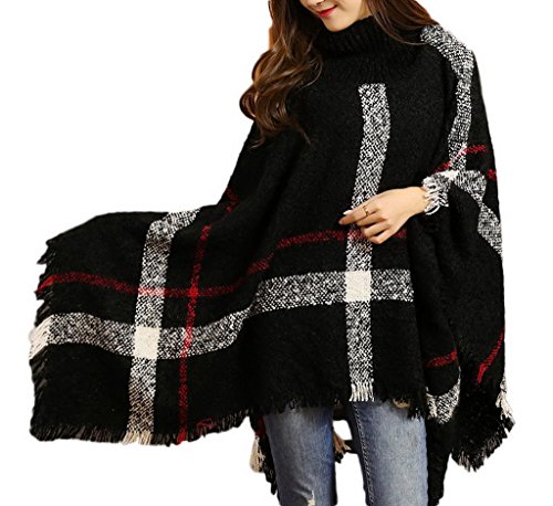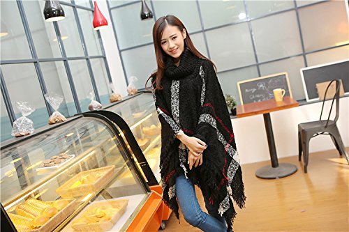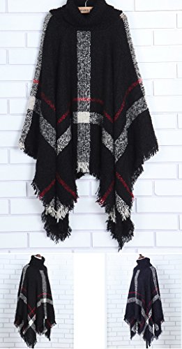 원본상품명: (ビグッド)Bigood レディ?ス スト?ル ショ?ル お?落 マント ハイネック トップス ドルマン ニットポンチョ フェミニン 女性用 秋冬防寒 暖か チェック柄 フリンジ飾り ブラック