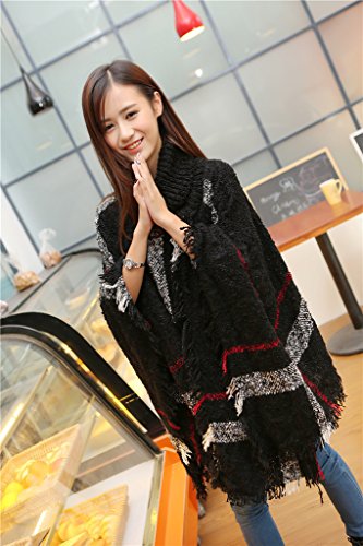 (《비굿도》)Bigood 레이디스 스톨 숄 멋장이 망토 하이네《구》 톱스 달러 맨 니트 판초 페미닌 여성용 추동 방한난인지(든가) 체크 무늬 fringe 장식