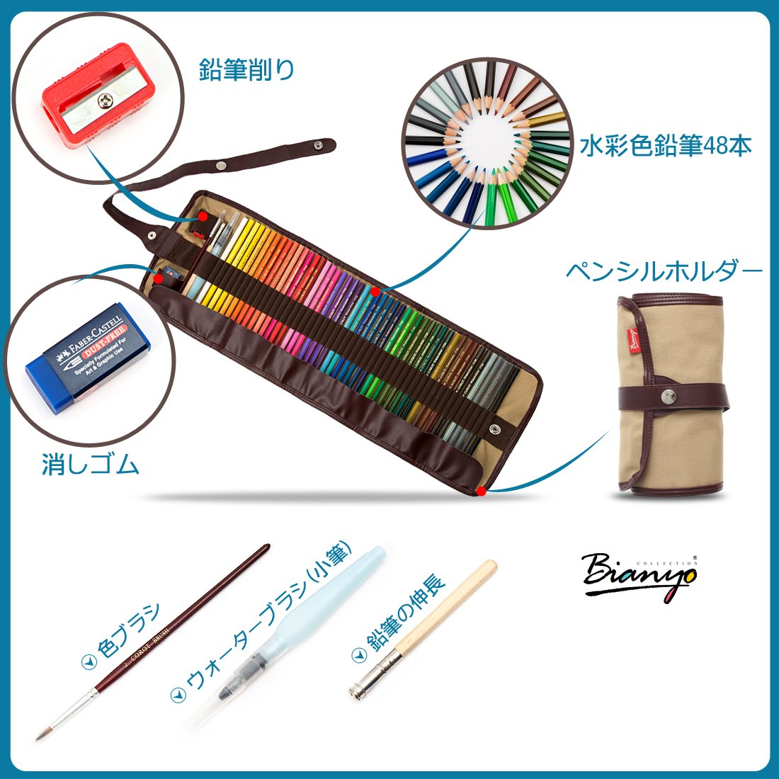 (Via two O) Bianyo 48 colored pencils set watercolor pencils pencil soluble in 48-color pencil water for Coloring