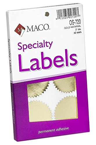 MACO Gold Foil Notarial Seals, 2 Inches in Diameter, 42 Per Box (OS-720)