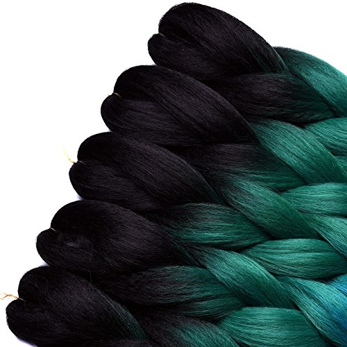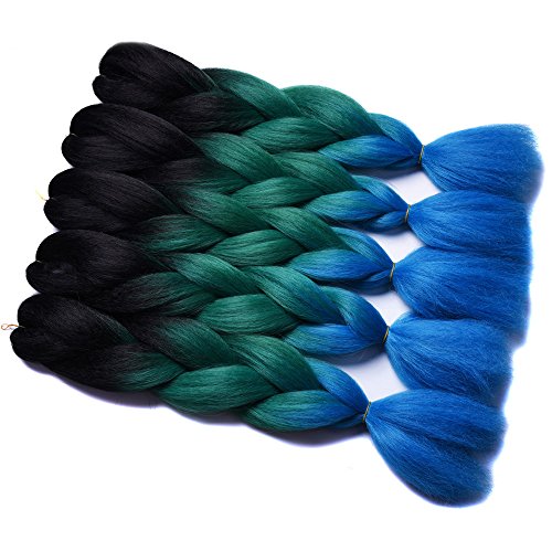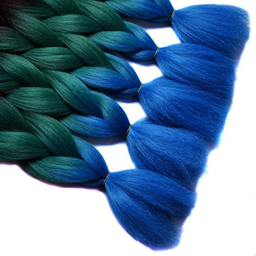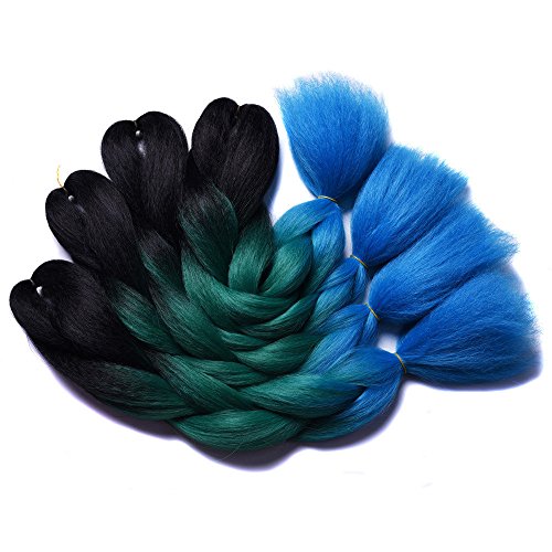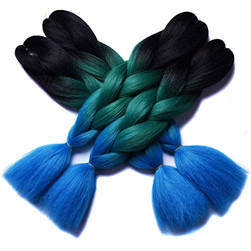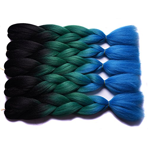 5 Packs Ombre Braiding Hair Extensions Three Tone Colored Jumbo Braids Bulk Hair Black Green Blue Purple Pink (Black Green Blue)