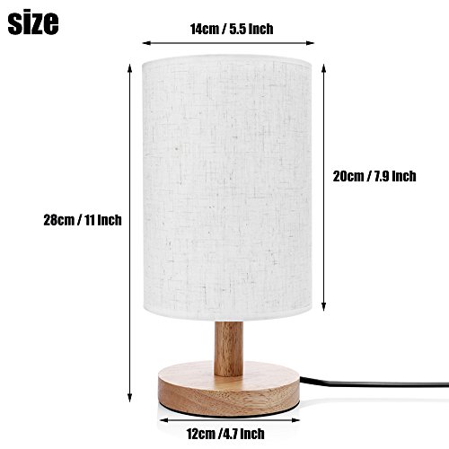 Table Lamps with LED Bulb INVESCH Bedside Minimalist Solid Wood Table Lamp for Bedroom Living Room Linen Fabric Shade E26/E27 Base Desk Lamp with ON/OFF Switch