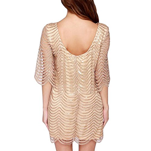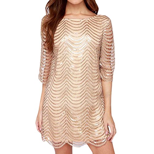 E.JAN1ST Women's Metallic Dress Boatneck 3/4 Sleeve Wave Gold Shift Party Dresses
