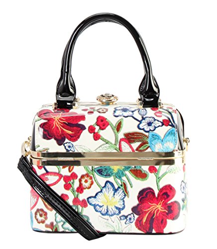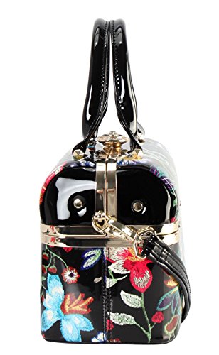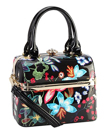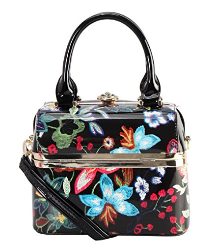 -. Brand : Diophy -. Color : Black -. Department : womens -. Feature : This handbag comes in 2 different colors: Black, and White. / High Quality Shiny Patent PU Leather Floral Embroidered Pattern Small Box Style Top Handle Handbag with Removable Strap. / High Quality Fabric Lined Interior with Multiple Interior Pockets. 1 Main Compartment with 1 Zippered Pocket and 1 Open Pocket Inside. / Approximate Size info: Length 7.6" x Width 4.5" x Height 6" Material: PU Faux Leather. Snap Closure. / Color showing in other color is to show the different variation angles of the handbag. The actual bag ship, will be the one your purchased. -. Label : Diophy -. Manufacturer : Diophy -. Model : LE-6430 Parent -. PackageQuantity : 1 -. ProductGroup : Shoes -. ProductTypeName : HANDBAG -. Publisher : Diophy -. Size : Small -. Studio : Diophy -. Title : Diophy Shiny Patent PU Leather Floral Embroidered Pattern Small Box Style Top Handle Handbag LE-6430