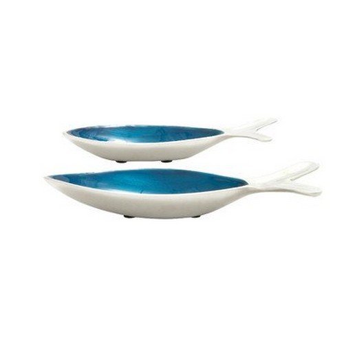 Deco 79 22258 Aluminium Enam Tl Fish Bowl S/2 10" , 9 -