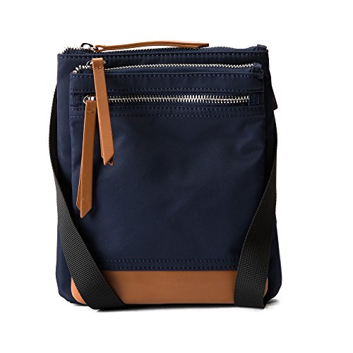 Multi functional small cross body pouch with adjustable strap, two front zip pockets, front revealing flap pocket hiding passport and pen slide pockets. Includes interior cell phone and zip pockets.