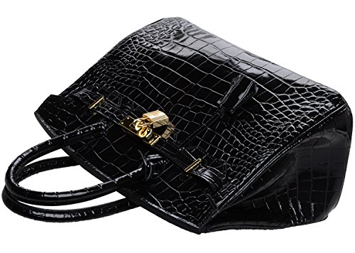 -. Brand : Cherish Kiss -. Department : womens -. Feature : Material: Embossed Crocodile Leather With Synthetic Lining; Gold Hardware With Padlock Closure; / Small Size: 30cm: L11.8'' x W 5.5'' x H 9'' With 3.5'' Handles; / Big Size: 35cm: L13.8''x W7'' x H 10'' With 4'' Handles; / Structure: Large And Roomy Big Compartment, Enough For Your Daily Use. One Slip Pocket And One Zipper Pocket For Cellphone/ Keys/ Cards,etc; / Remarks: This is Embossed Crocodile Patent Leather, So it will be a little stiff in order to make this handbags in good shape; -. Model : H30 cocodile -. PackageQuantity : 1 -. ProductGroup : Shoes -. ProductTypeName : HANDBAG -. Title : Cherish Kiss Padlock Bag Women Crocodile Leather Top Handle Handbags