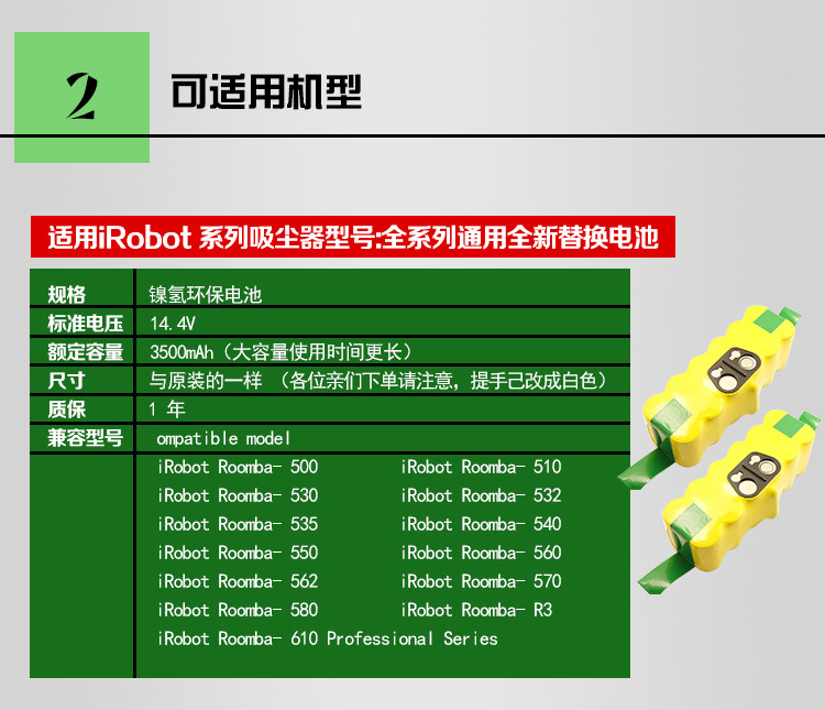 以诺适用IROBOT ROOMBA 扫地机 52708 560 595 650 770 780 电池