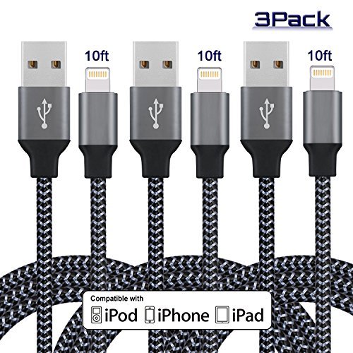 Package Contain: 3pack 10ft Nylon Braided lightning to USB cables in black.