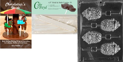 Cybrtrayd 'Smiling Santa Lolly' Christmas Chocolate Candy Mold with 50 4.5-Inch Lollipop Sticks and Chocolatier's Guide