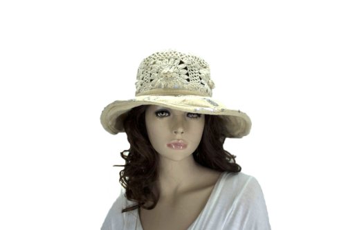 -. Title : Noonies Boutique Tan Crochet Glitter Sun Hat 14'' w/ 4'' Brim