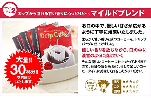 【内容量】ドリップバッグコーヒー 8gx100袋【内容量】マイルドブレンド30袋、ライトブレンド30袋、ビターブレンド30袋、アニバーサリーブレンド10袋【用途】アウトドア、会社のオフィス、ご家庭でのコーヒータイムに。お湯だけで本格コーヒーが簡単に楽しめます。賞味期限:製造日より1年間.