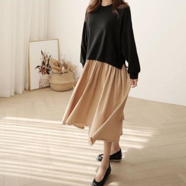 シンプルなデザインのロングワンピース♪
