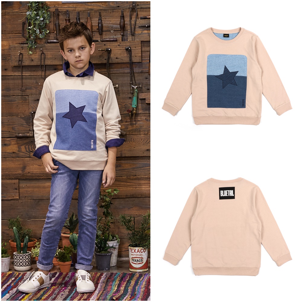 센서티브한 베이지 컬러로 제안한 맨투맨 티셔츠입니다.
