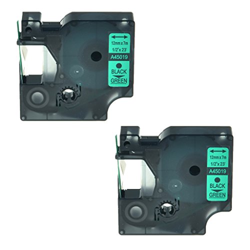 -. Title : NineLeaf 2 Pack Black on Green Laminated Label Tape Compatible for DYMO 45019 D1 12mm 1/2" LabelManager 100 120P 150 160 LabelWriter 450 Duo P.R.Inter