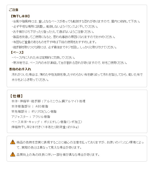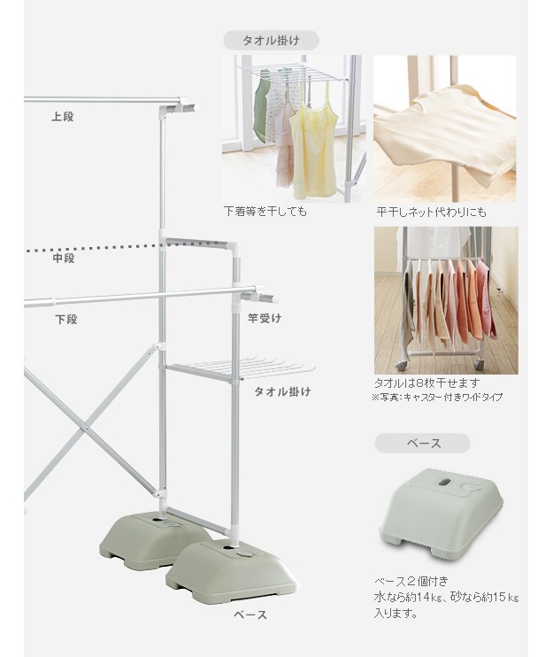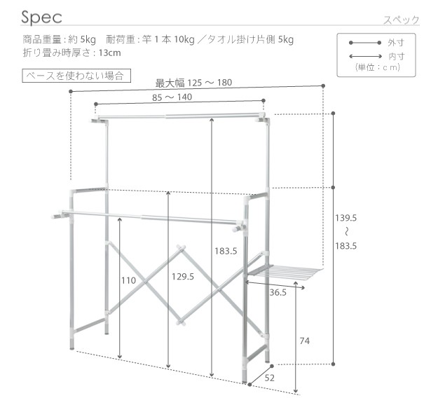 耐荷重:竿-約10kg/本、タオル掛け-約5kg