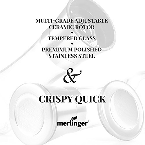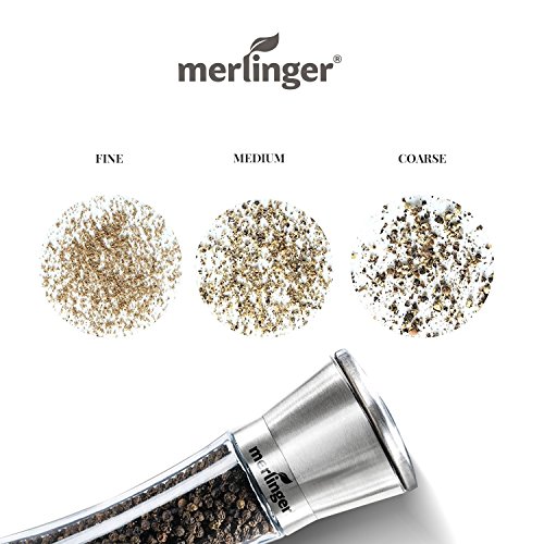 Premium quality, durability and elegance. Elegantly designed premium quality salt and pepper grinder sets by Merlinger made of ecologically clean and resistant materials will give you immense pleasure and will serve you longer.