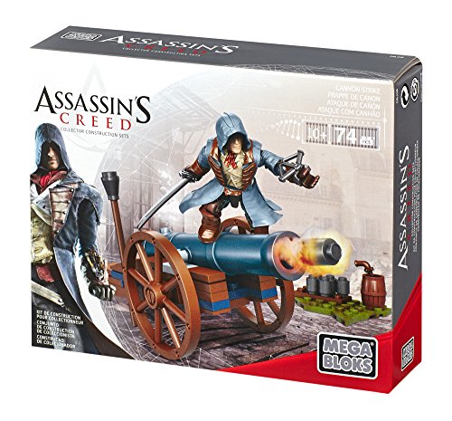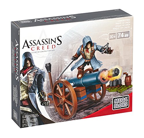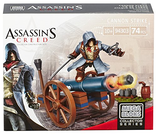 -. Binding : Toy -. Brand : Mega Bloks -. EAN : 0065541943032 -. Feature : One Arno Dorian micro action figure with detachable hood / Buildable canon and environment / Comes complete with accessories and weaponry such as gun and sword / Combine with other Assassin's Creed Buildable sets by Mega Bloks to recreate historic battles and adventures / Mix and match to customize -. IsAdultProduct : 0 -. IsAutographed : 0 -. IsMemorabilia : 0 -. Label : Mega Brands America Inc. - Megabloks - Montreal -. Manufacturer : Mega Brands America Inc. - Megabloks - Montreal -. Model : DBJ08 -. MPN : 94303 -. PackageQuantity : 1 -. PartNumber : 94303 -. ProductGroup : Toy -. ProductTypeName : TOYS_AND_GAMES -. Publisher : Mega Brands America Inc. - Megabloks - Montreal -. ReleaseDate : 2014-09-20 -. Studio : Mega Brands America Inc. - Megabloks - Montreal -. Title : Mega Bloks Assassin's Creed Cannon Strike -. UPC : 065541943032 -. Warranty : Lifetime warranty against manufacturer's defects