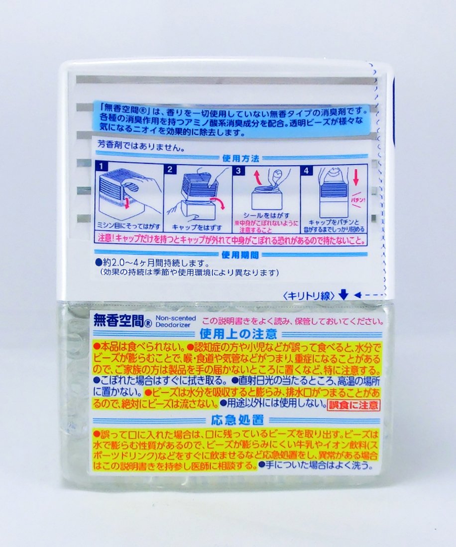 ● No fragrance used, non-fragrant type deodorant ● Renewal to large beads of maximum diameter 15mm ● Surface area is greatly increased, resulting in a significant deodorant effect feeling UP