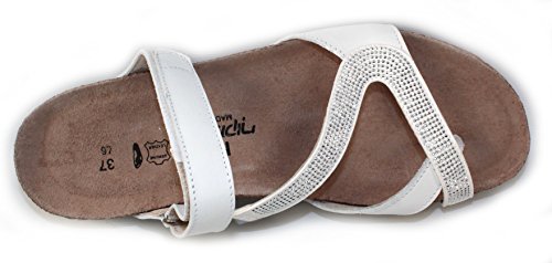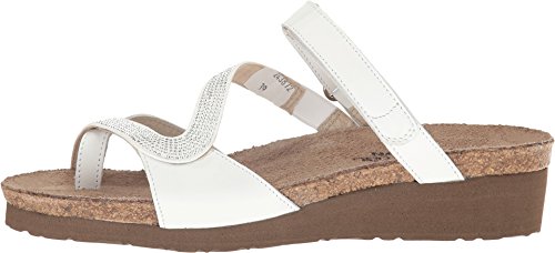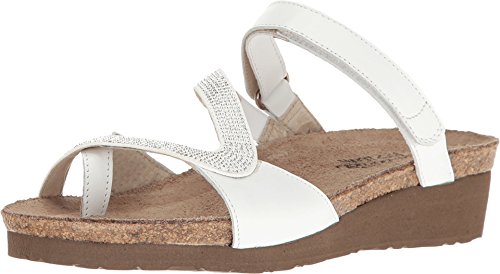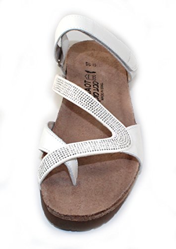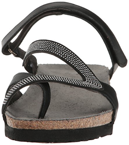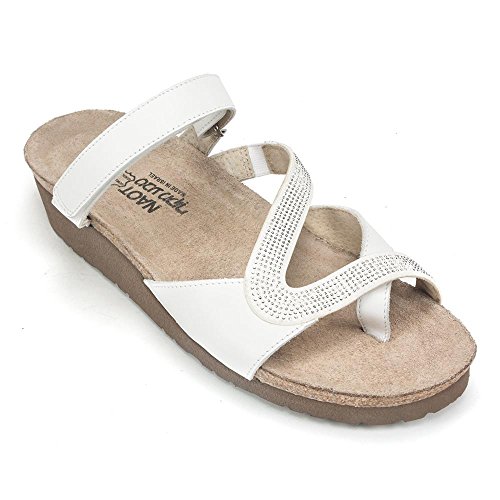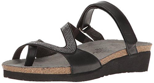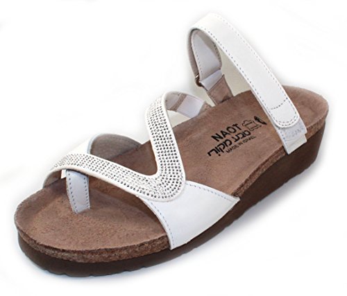 Product DescriptionThe Naot Giovanna Strappy Sandal is a stylish slide with rhinestone accents. This style features a hook and loop strap and a toe loop. Buckle ornamentation Backstrap with hook and loop closure Stylish rhinestone accents.0
