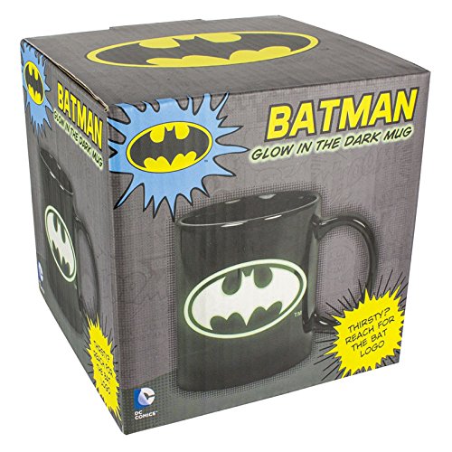HIGH QUALITY: This Batman Glow in the Dark mug is made with super sleek black glaze on the high quality stoneware with a premium glow in the dark decal perfect to suit any drink whether cold or hot.