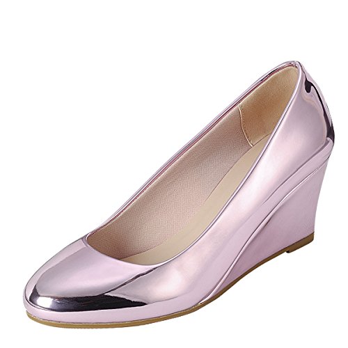 (Forever)/Women's/Pumps/DIRECT FROM USA/Forever Womens Round Closed Toe Metallic Slide Slip On Med Low Wedge Heel Pump Shoe 7 Pink