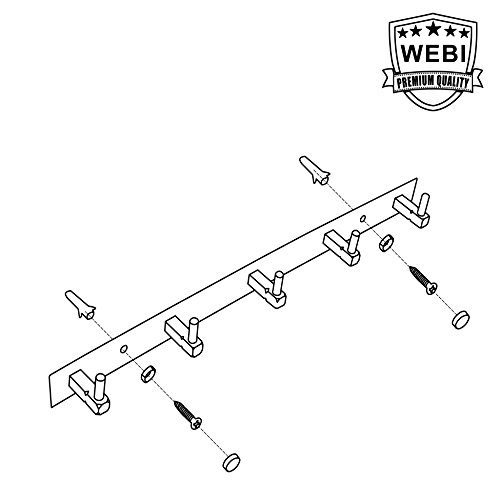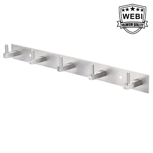WEBI Solid SUS 304 Coat Towel Holder, 5 Hooks, Brushed Finish, for Bathroom, Bedroom, Kitchen, Utility Room, Laundry Room, Home Office Storage & Organization, L-CF05