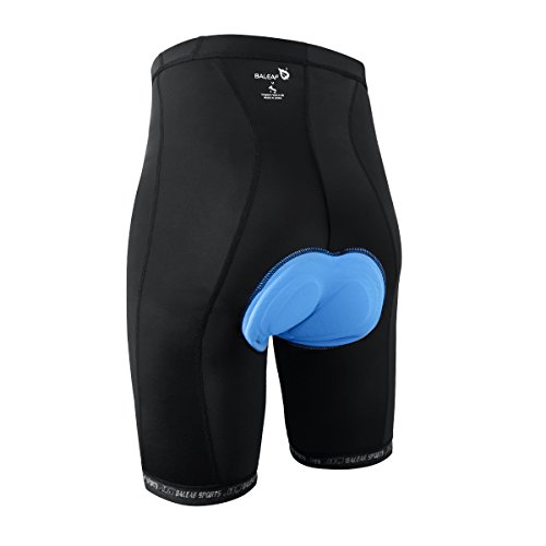 -. Brand : Baleaf -. Department : mens -. Feature : UPF 50+ fabrication protects your skin during outdoor activity by blocking harmful Ultraviolet rays. / Breathable fabric wicks quickly away moisture and keeps you cool and dry while riding in summer. / Anatomic 3D Chamois is male-specific and non-chafing with padding in key areas, provides miles and miles of comfort. / Reflective elements improve safety in night riding or low-sight condition. / Wide elastic waistband is reinforced for a more secure, comfortable fit. Size chart: S=30.5-32.5" M=33-34.5" L=35-36.5" XL=37-39.5" XXL=40-42.5" -. Label : Baleaf -. Manufacturer : Baleaf -. ProductGroup : Sports -. ProductTypeName : OUTDOOR_RECREATION_PRODUCT -. Publisher : Baleaf -. Studio : Baleaf -. Title : Baleaf Men's Cool Dry Padded Cycling Compression Shorts UPF 50+