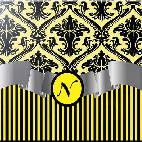Rikki Knight RK-12intilec-2156 12" X 12" Letter "N" Yellow Damask Stripes Monogrammed Design Ceramic Art Tile