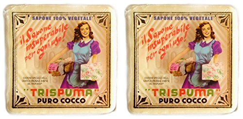 Alighiero Campostrini: "Trispuma" Pure Coconut Biodegradable Soap 10.5 Ounce (300gr) Packages (Pack of 2) [ Italian Import ]