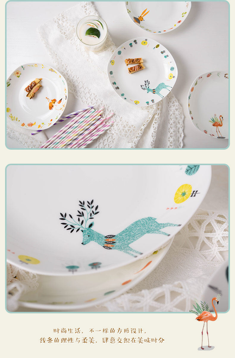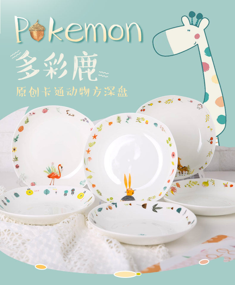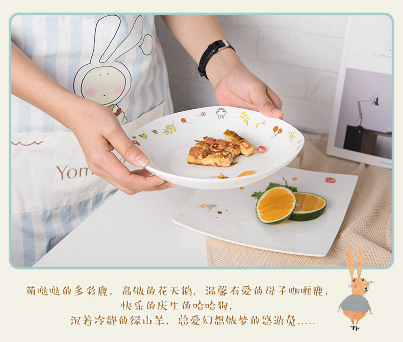 盘子菜盘家用陶瓷创意方形深盘好看的盘子特色卡通早餐盘